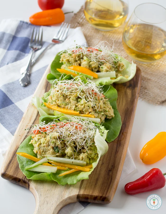 - Divide salad mix into 4 servings and spoon each serving into a lettuce leaf. Top with desired toppings and enjoy!